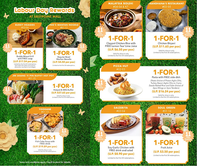 Eastpoint Mall Labour Day 1-For-1 Dining Promotion On 1 May