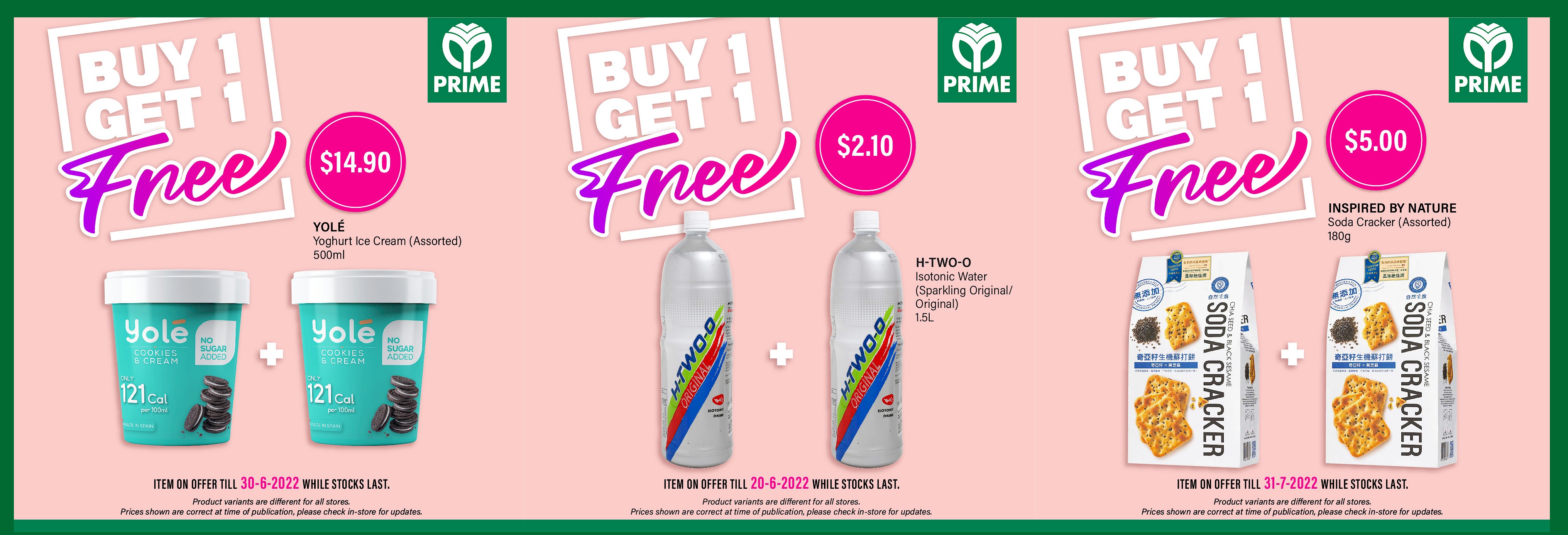 - 1-for-1 Yolé Yoghurt Ice Cream (500ml) @ $14.90 - offer valid till 30 June 2022 while stocks last.