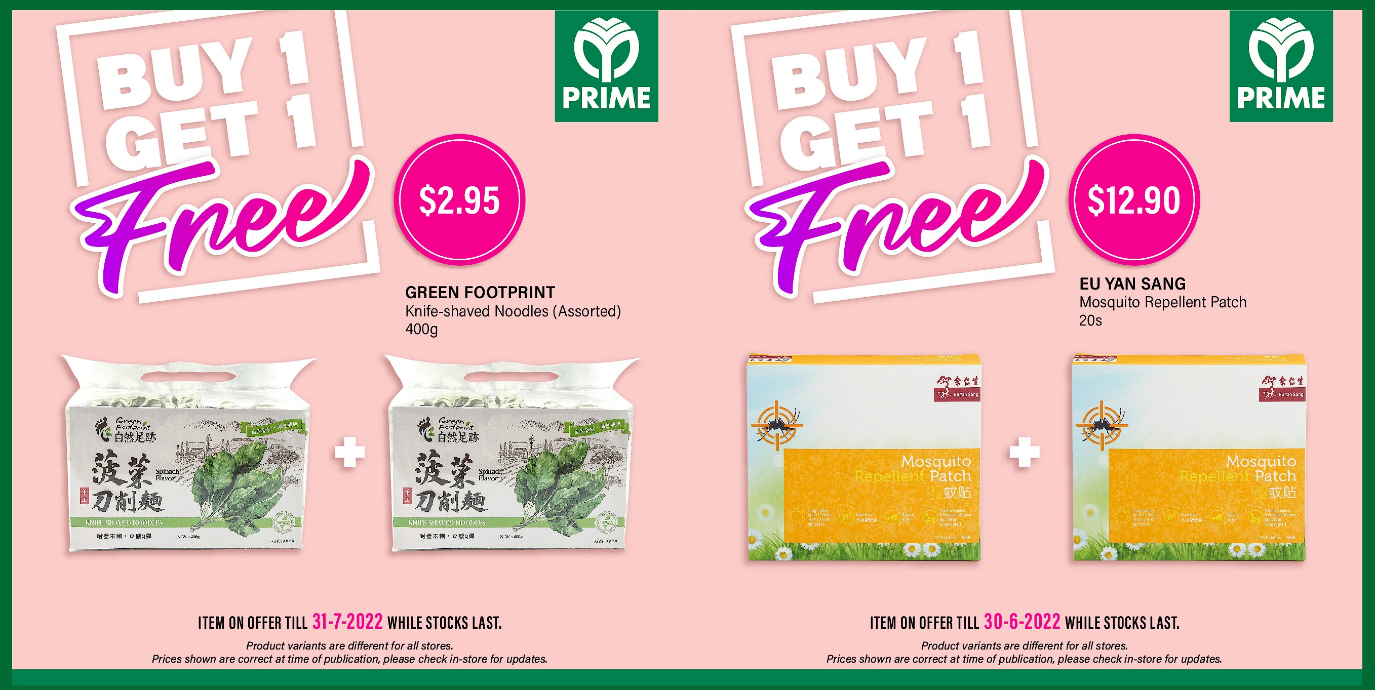 - 1-for-1 Green Footprint Knife-shaved Noodles (400g) @ $2.95 - offer valid till 31 July 2022 while stocks last.