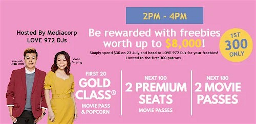 From 21 July to 10 August 2022, walk into any GV Box Office or Automated Ticketing Machine, purchase any two tickets and get these coupons:
