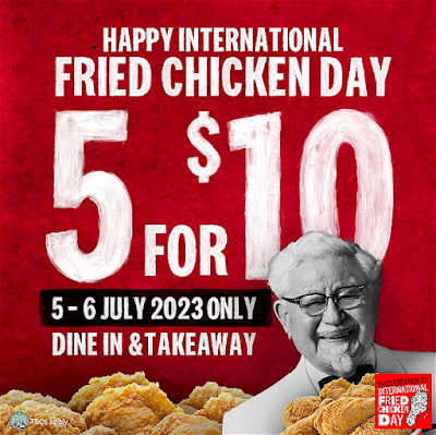 For 2 days only on 5 & 6 July, get five pieces of delectable KFC fried chicken for only $10. Promotion is valid for dine-in and takeaway at all KFC outlets except NTU, Singapore Polytechnic, Towner Kallang Stadium, Woodlands 888, Harbourfront, Jurong Spring, and Punggol Oasis.
